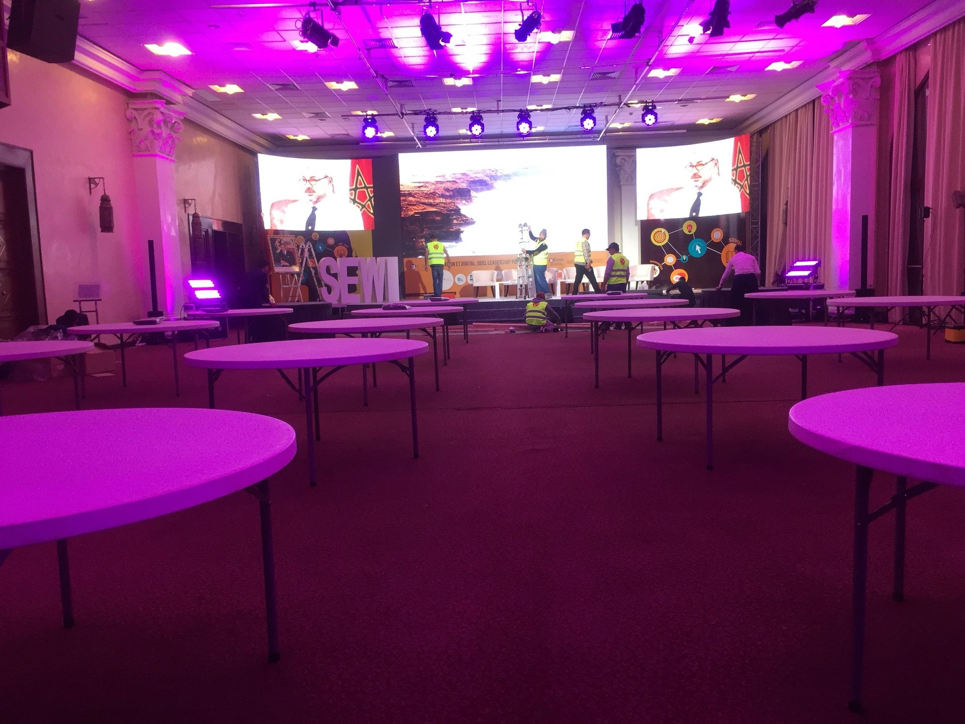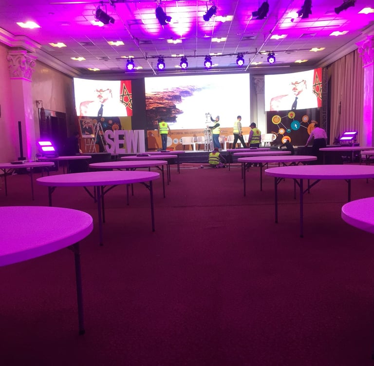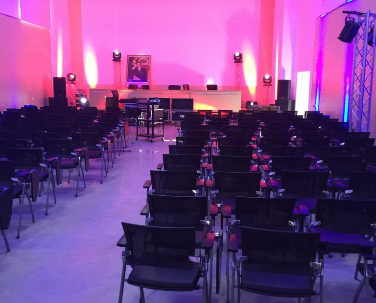 2A Event, spécialiste des prestations techniques et de la location de matériel pour les congrès, conventions et conférences à Marrakech, vous accompagne dans l'organisation de vos événements professionnels. Nous mettons à votre disposition des équipements de pointe et des solutions techniques sur mesure pour assurer la fluidité et la réussite de vos événements d’affaires.